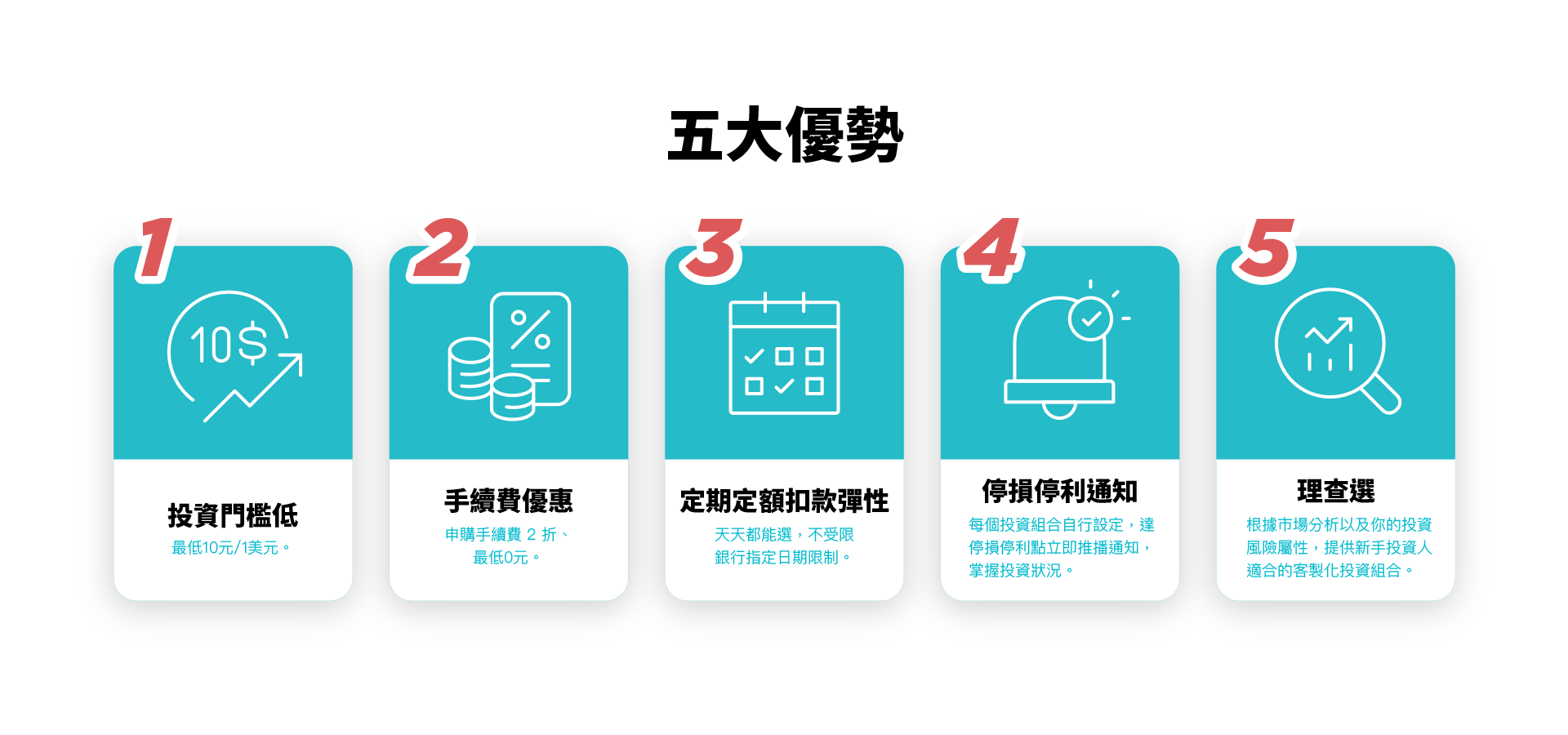 除了美股,開立Richart數位帳戶後,也可以投資基金!Richart在基金的部分提供3大類投資標的,分別是最低10元/1美元就能投資的「銅板基金」、100元/5美元的「百元基金」以及500元起的「ETF連結基金」,若是買美元計價的基金可用美元扣款,申購贖回時就不會受匯率影響,再搭配基金申購手續費2折、最低0元的優惠,對小資族而言,不僅入場門檻低、買賣也更為便利。